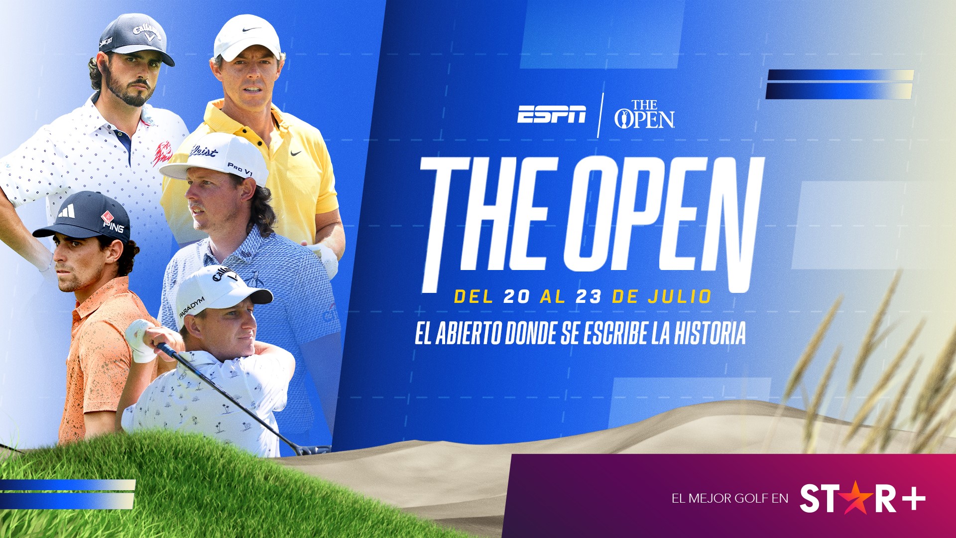 Desde el jueves 20 hasta el domingo 23 de julio, en el tradicional campo del Royal Liverpool, Hoylake, Inglaterra, Star+ & ESPN2 brindarán una excepcional cobertura, con relatos y comentarios de los especialistas Matías Anselmo y Hernán Rey, a los que se sumarán durante el fin de semana los valiosos aportes de Nora Ventureira y Valeria Quesada.