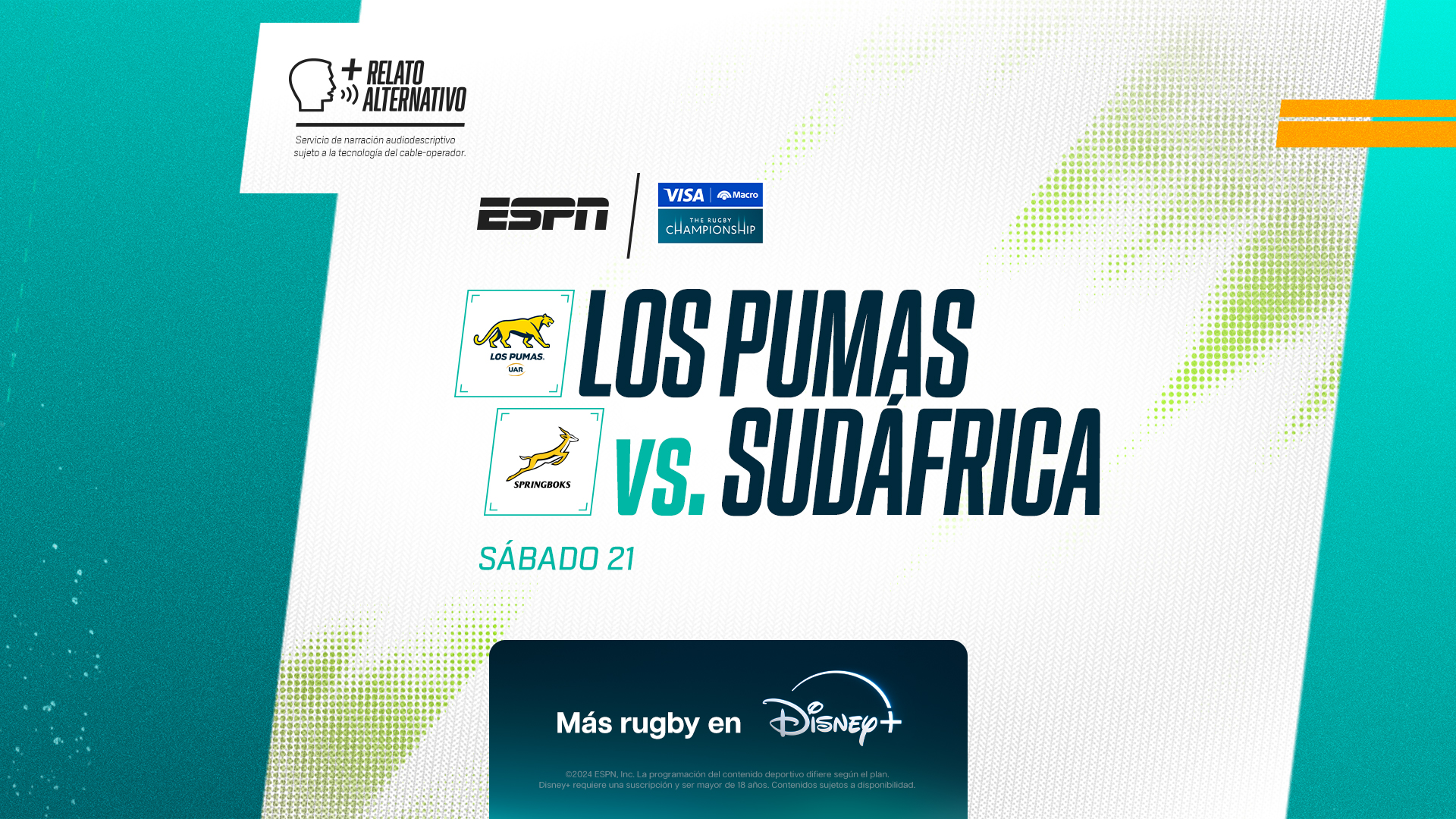 (*) El partido entre Los Pumas y Sudáfrica contará con relato descriptivo para personas con discapacidad visual.