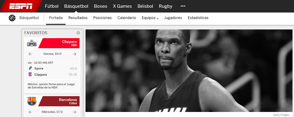 ESPN.com lanza Favoritos, con la posibilidad de personalizar la portada