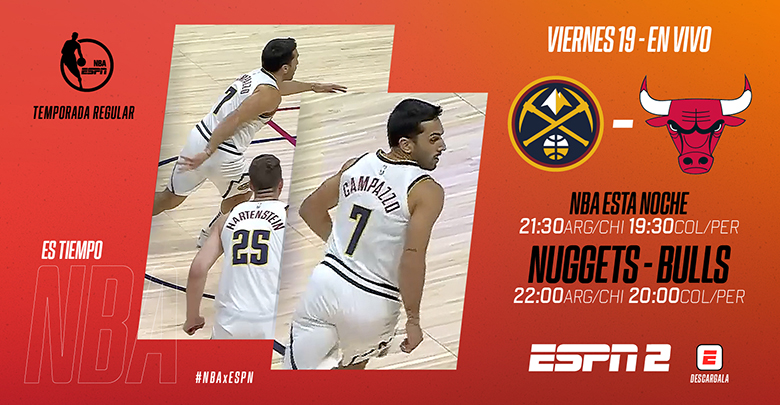 - Este viernes 19, ESPN2 emitirá nuevamente a los Denver Nuggets en un duelo clave frente a los Bulls de Chicago, dándole el cierre perfecto a una semana completa del mejor básquetbol del mundo.
