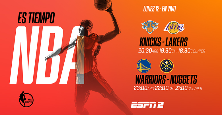 - Lunes 12 en vivo por ESPN2 & ESPN App, a continuación de NY Knicks vs. LA Lakers, que comenzará a las 20:30ARG/URU 19:30BOL/CHI/PAR/VEN 18:30COL/ECU/PER