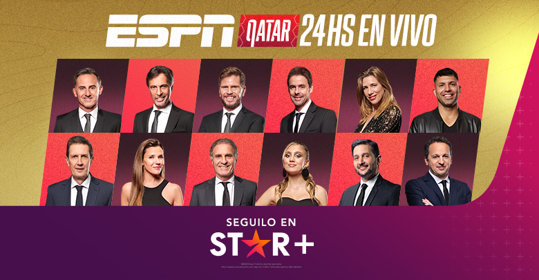 ATENCIÓN ARGENTINA. ESPN en Star+ presenta una programación excepcional 24 horas en vivo dedicada a Qatar, con SportsCenter y los shows de fútbol como pilares informativos. Además, Star+ ya cuenta con shows exclusivos disponibles y anticipa el WATCH PARTY QATAR, que tendrá la participación del “Kun” Agüero