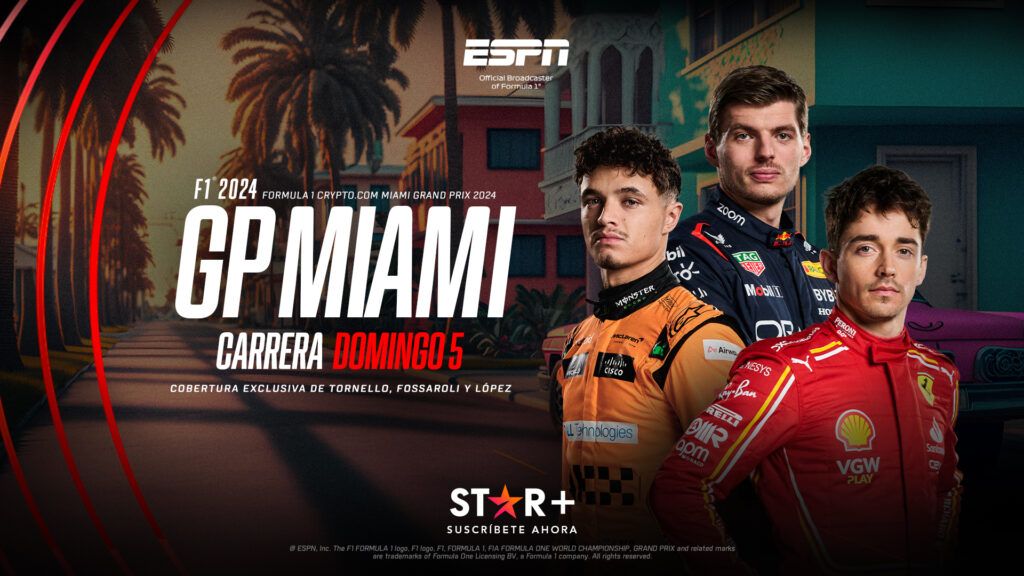 Con un dinámico circuito que promedia los 320 kilómetros por hora, el Formula 1 Crypto.com Miami Grand Prix 2024, en el corazón del estado de Florida, albergará del 3 al 5 de mayo la sexta fecha de la máxima categoría