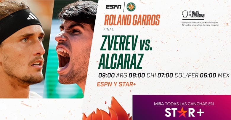 ESPN trae a STAR+ la gran final en Roland Garros entre Alcaraz y Zverev