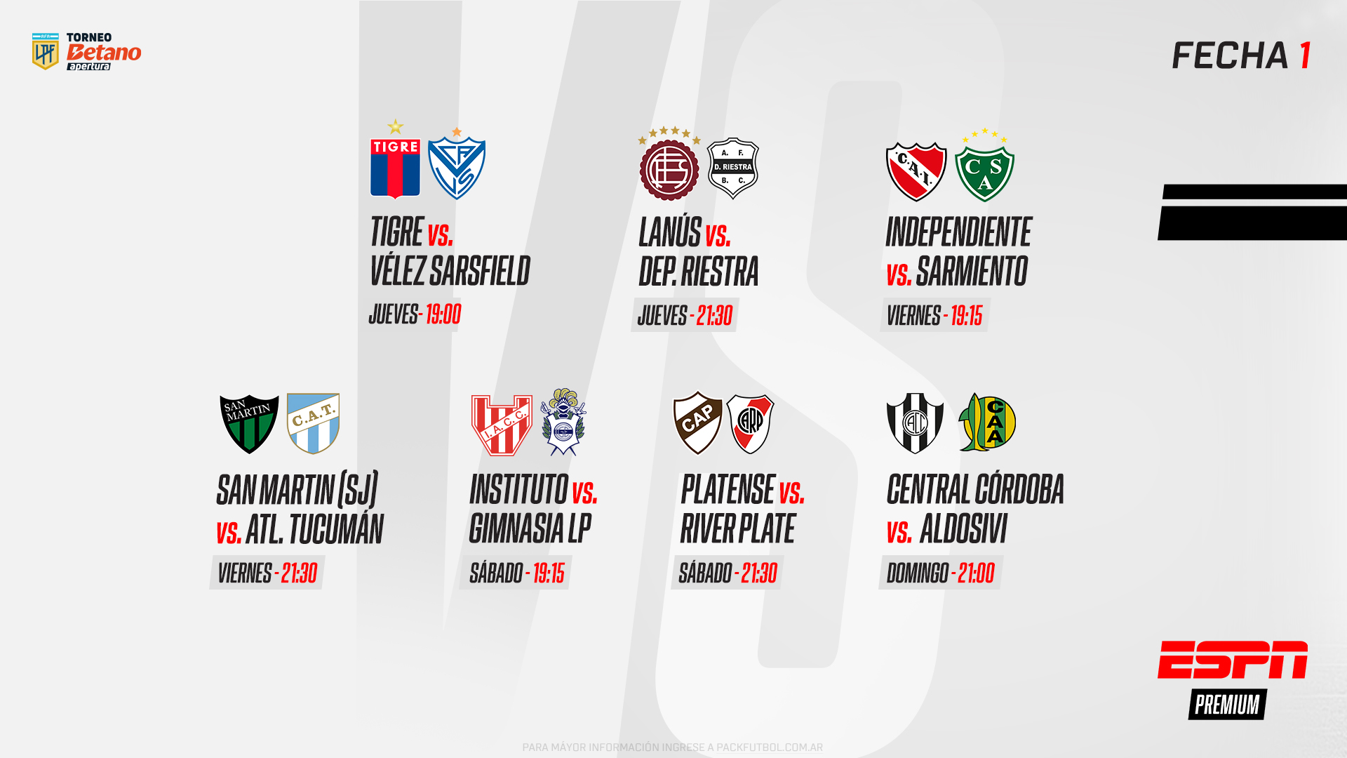 ATENCIÓN ARGENTINA // Platense-River, Independiente-Sarmiento y Tigre-Vélez, en el arranque de la LPF 2025 por ESPN Premium