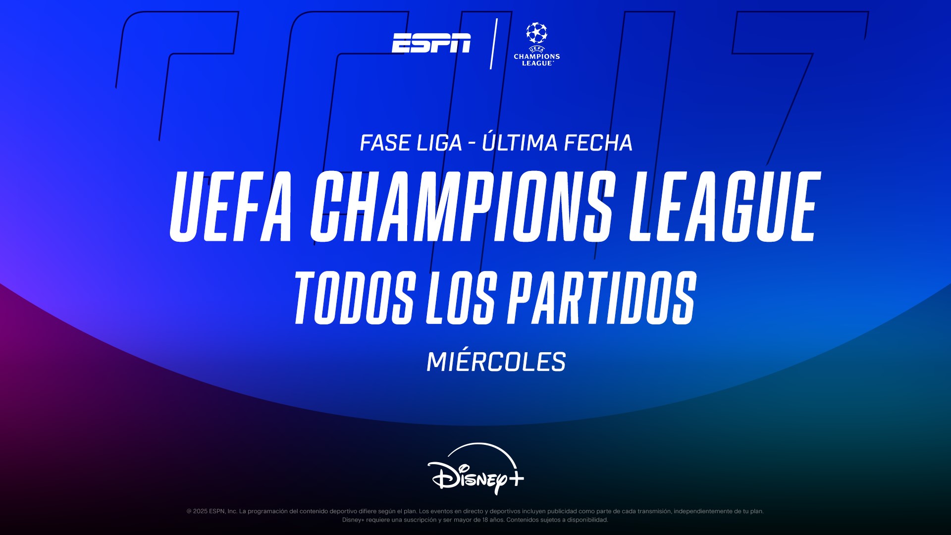Esta semana se jugará la octava y última fecha de la Fase Liga de la UEFA Champions League y quedarán definidos los clasificados a los octavos de final, quienes jugarán los playoffs y cuáles serán los eliminados. El miércoles 29 de enero se podrá disfrutar de los 18 partidos solo por ESPN en Disney+, en una fecha que promete choques apasionantes, como PSV vs. Liverpool, Barcelona vs. Atalanta, Atlético Madrid vs. Bayer Leverkusen, Juventus vs. Benfica, Stade Brestois vs. Real Madrid y Manchester City vs. Brujas.