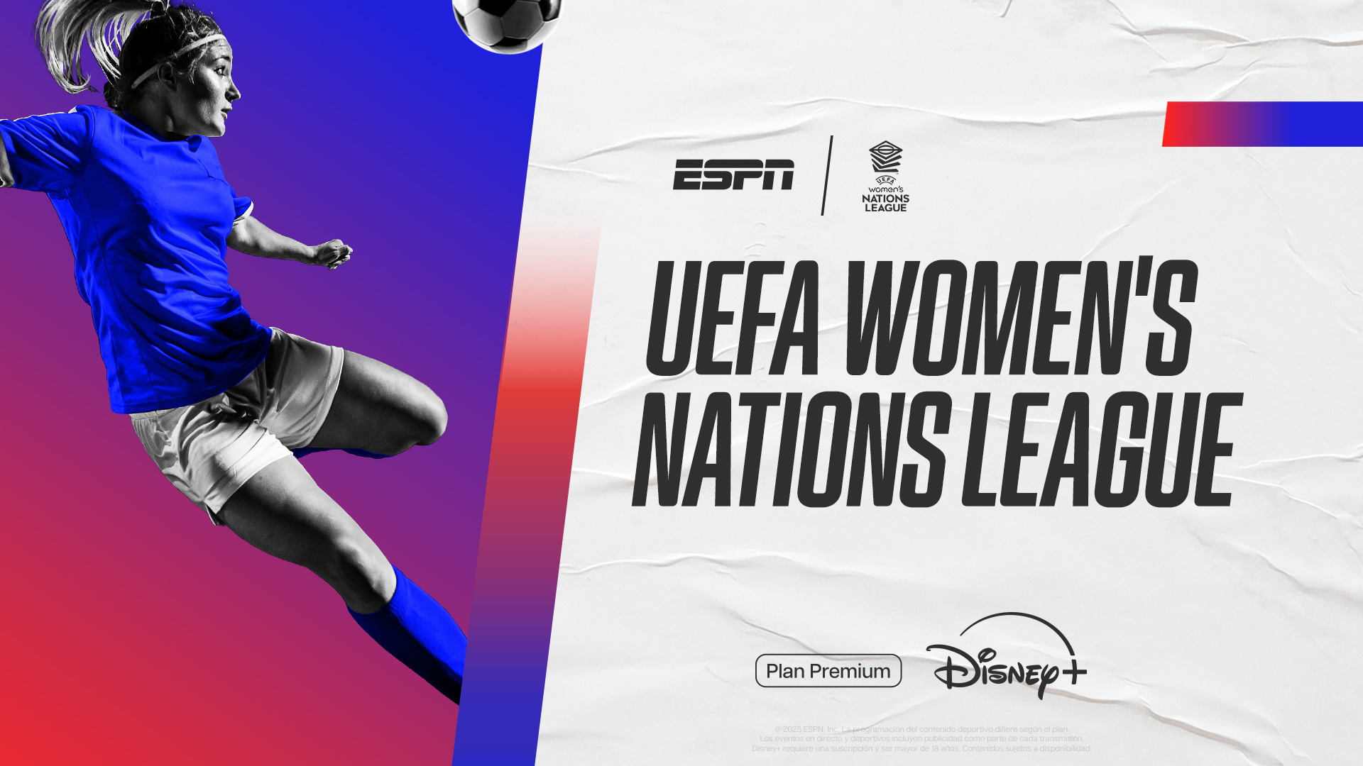 La emoción del fútbol femenino se vive en Disney+. Desde el viernes 21, las mejores selecciones europeas se enfrentarán en la UEFA Nations League. Con la participación de las grandes estrellas del fútbol europeo, con transmisión en VIVO por el Plan Premium Disney+.