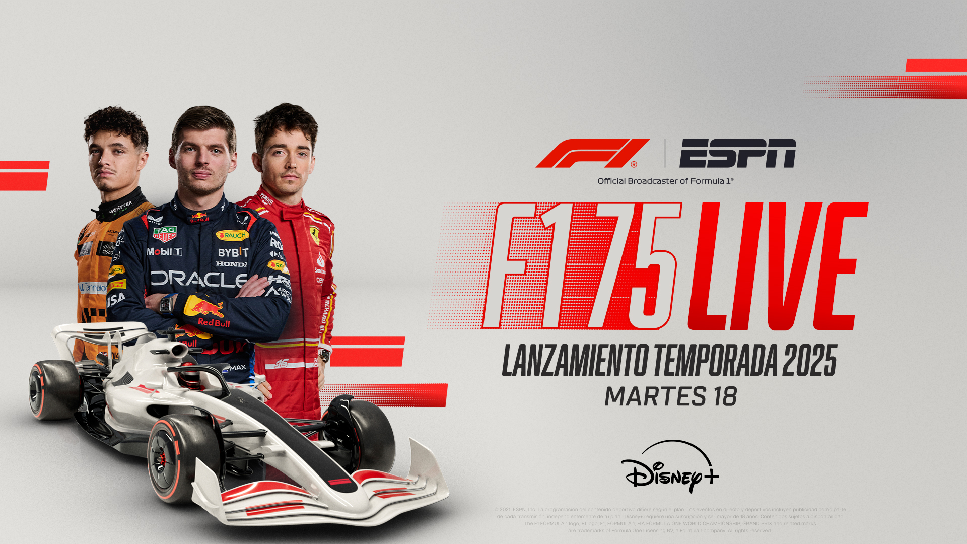 Las mejores escuderías y pilotos están en la F1. Siente el rugir de los motores y la adrenalina de los grandes premios. Y como buen fanático, tienes tu lugar en primera fila en Disney+.