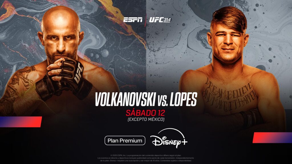 Las artes marciales mixtas regresan a Miami, y que mejor estelar que con el UFC 314, evento numerado que tendrá como batalla principal el choque entre el excampeón Alexander Volkanovski y el alto clasificado Diego Lopes, con transmisión en vivo desde el Kaseya Center, con Andrés Bermúdez, Ivette Hernández y Gastón ‘Tonga’ Reyno, quienes se encargarán de narrar todo lo que suceda por ESPN KNOCKOUT en el Plan Premium Disney+.