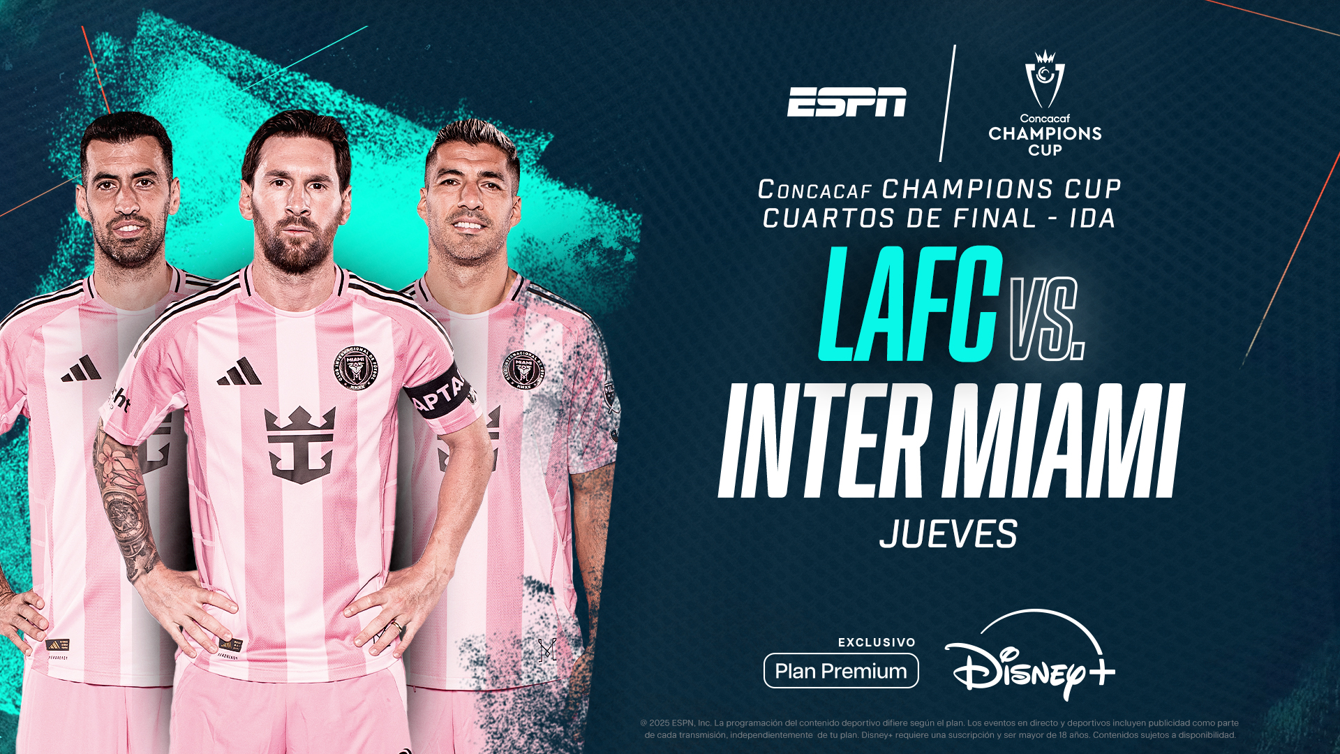 Ni bien comienza el jueves 3 de abril, los suscriptores del Plan Premium Disney+ podrán disfrutar del Inter Miami en su visita a Los Angeles FC, por la ida de los 4tos de final de la CONCACAF Champions Cup.Junto al astro argentino, entre otros futbolistas de renombre, estará el implacable goleador uruguayo Luis Suárez