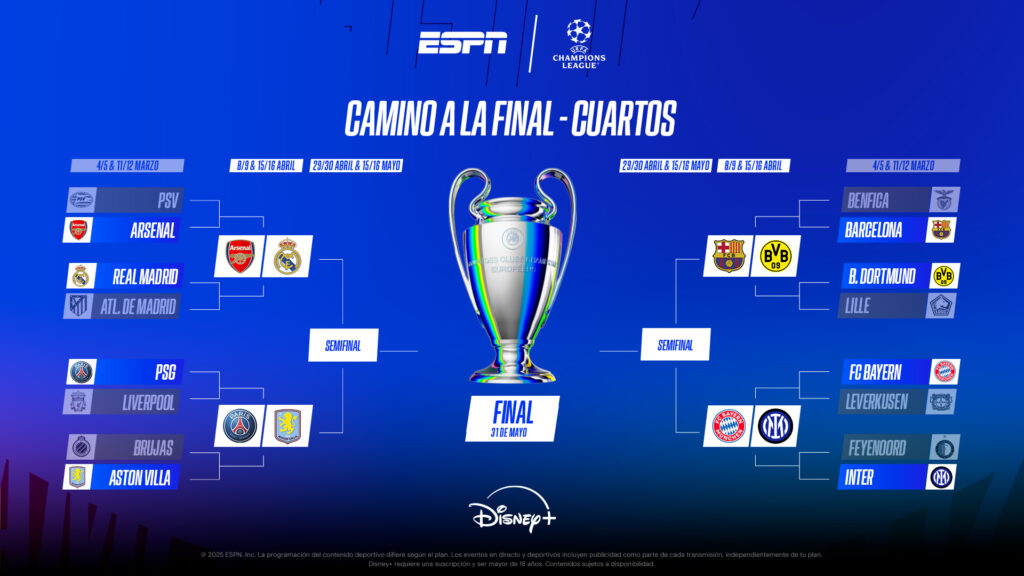 ESPN trae a DISNEY+ los esperados cuartos de final de la UEFA Champions League
