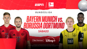 13:15 Plan Premium Disney+ / ESPN5 – Bundesliga Fecha #29 – Bayern Munich vs. Borussia Dortmund