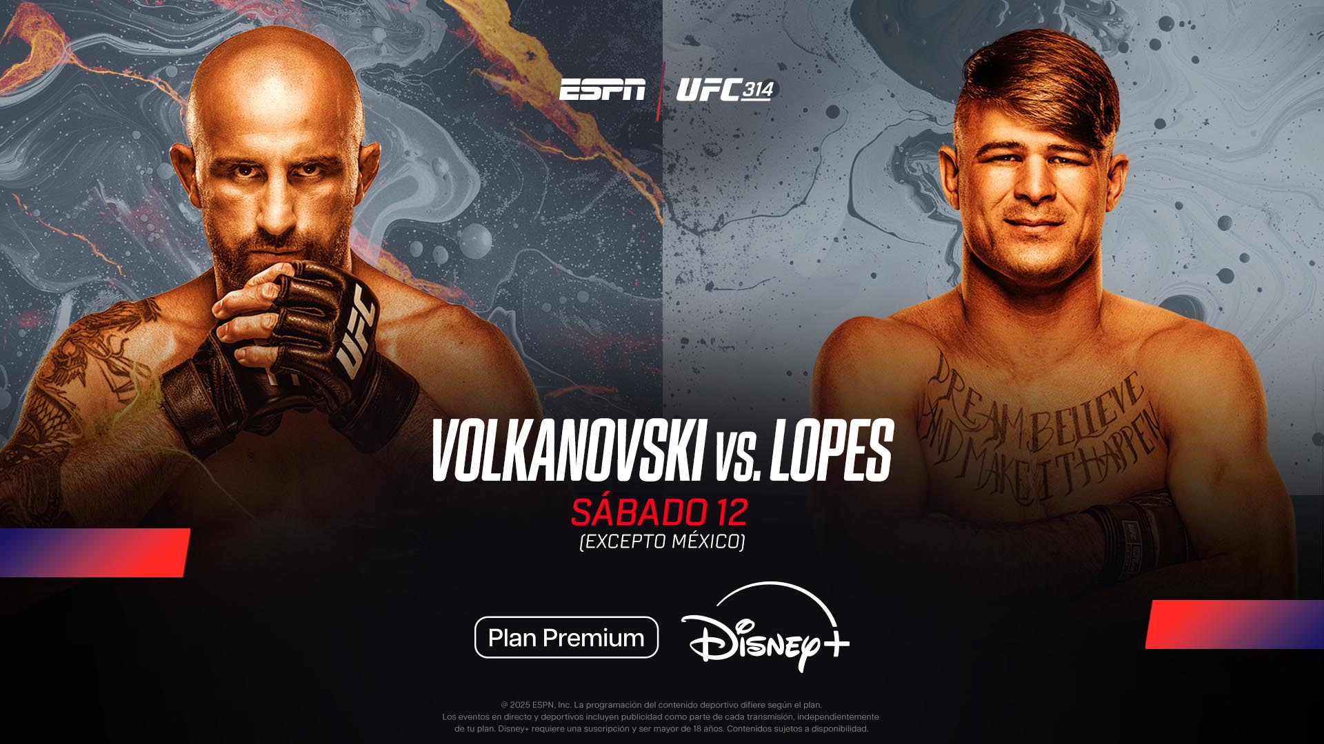 ESPN KNOCKOUT trae a DISNEY+ el UFC 314 desde Miami, con el combate por el título entre Volkanovski y Lopes