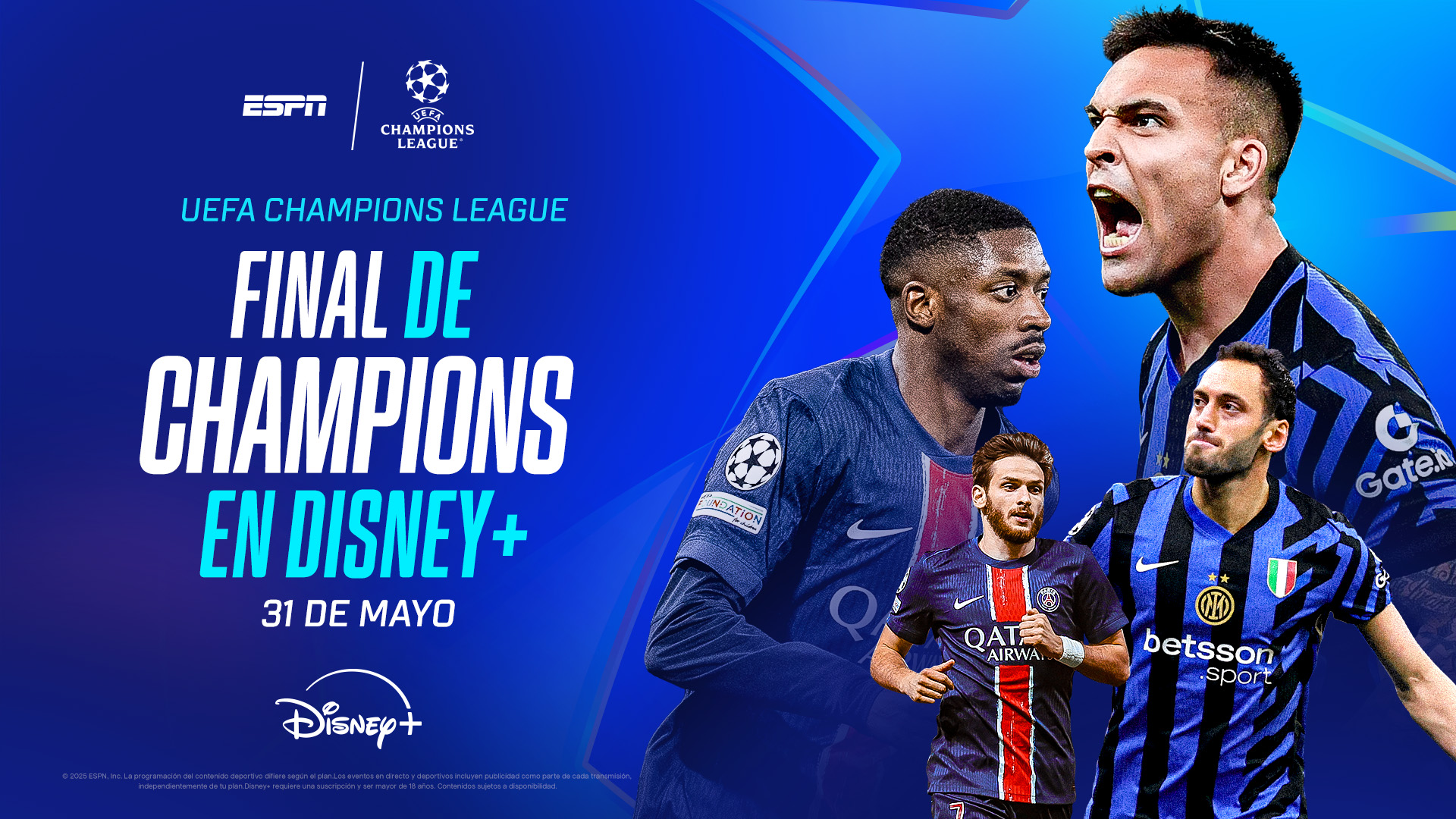 ESPN trae a DISNEY+ la gran final PSG-Inter, para abrazar la gloria de la UEFA Champions League