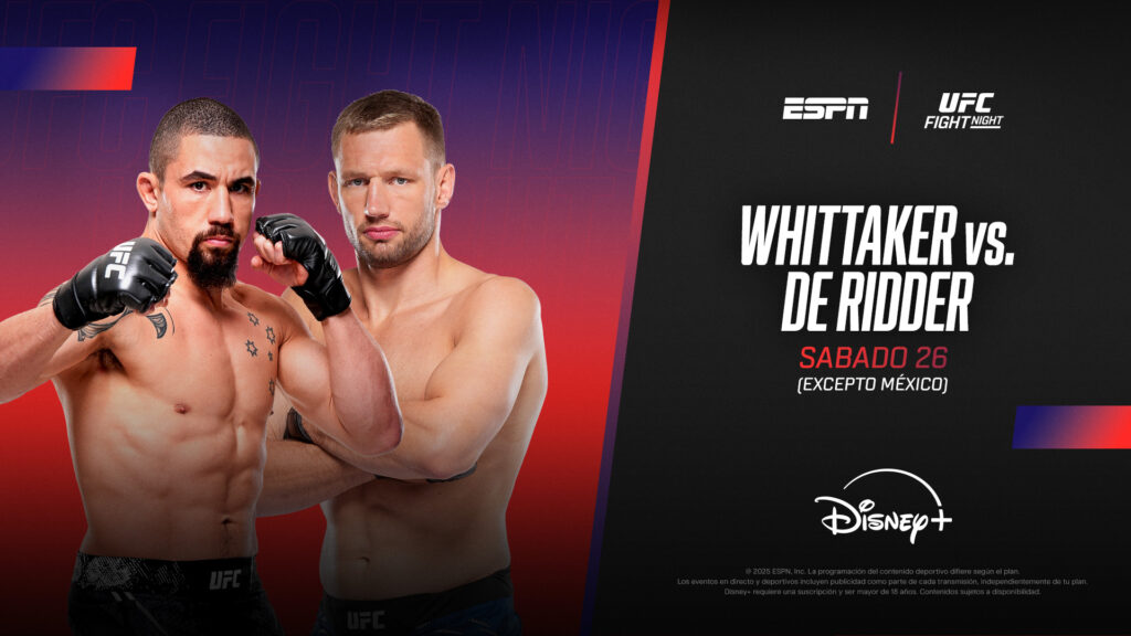 El australiano Robert Whittaker espera seguir escalando posiciones cuando se enfrente este sábado 26 con el holandés Reinier de Ridder en la estelar, a la vez que el peruano José Ochoa irá por otro exigente desafío. Todo por el Plan Premium Disney+