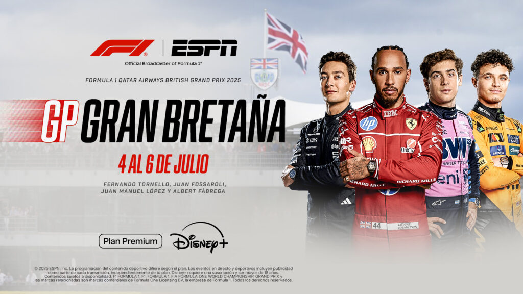 Del 4 al 6 de julio, en el histórico circuito de Silverstone se disputará el FORMULA 1 QATAR AIRWAYS BRITISH GRAND PRIX 2025, con una excepcional cobertura para los suscriptores del Plan Premium Disney+, que incluye las prácticas, clasificaciones y carreras de F1, F2, F3