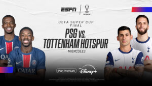 Y el miércoles 13 será el turno de la Supercopa de la UEFA, con el choque PSG y Tottenham Hotspur, ganadores de la UEFA Champions League y la UEFA Europa League, respectivamente, en vivo por ESPN y el Plan Premium Disney+