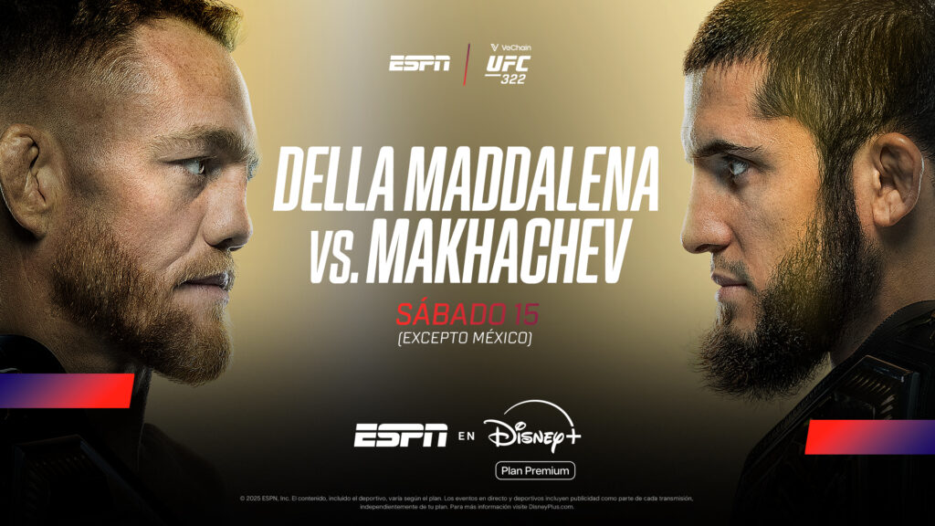 Una velada imperdible narrada por Andrés Bermúdez, Ivette Hernández y Gastón ‘Tonga’ Reyno, quienes llevarán toda la emoción del UFC 322 desde el icónico Madison Square Garden por ESPN KNOCKOUT en Disney+ Plan Premium. ¡Están todos invitados!