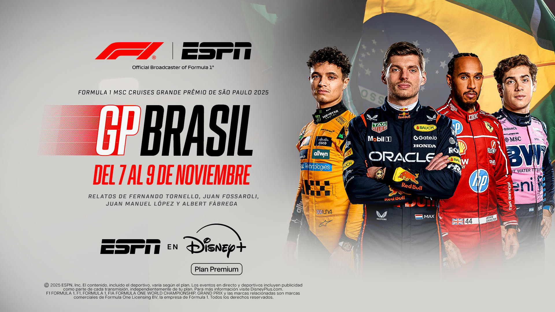 Toda la cobertura de ESPN para el Plan Premium Disney+ desde Brasil contará con los relatos y comentarios de Fernando Tornello, Juan Fossaroli, Juan Manuel ‘Cochito’ López, Alejandra Martínez y Albert Fàbrega. Los suscriptores podrán disfrutar de todas las sesiones de práctica, clasificación y carrera, acompañadas por la Race Hub tanto en el Sprint como en la carrera, que combina la señal principal con datos en tiempo real y las cámaras on-board exclusivas en el Alpine de Colapinto y el Red Bull de Verstappen.