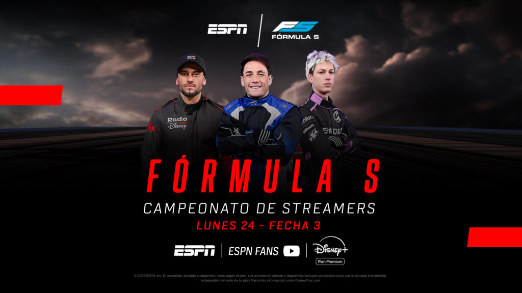 Después de dos fechas a pura adrenalina, la Fórmula S vuelve a acelerar con su tercera cita. Este lunes 24 de noviembre, los suscriptores de ESPN en Disney+ Plan Premium podrán disfrutar de esta singular competencia de kartings, en la que streamers y creadores de contenido miden en pista su talento al volante