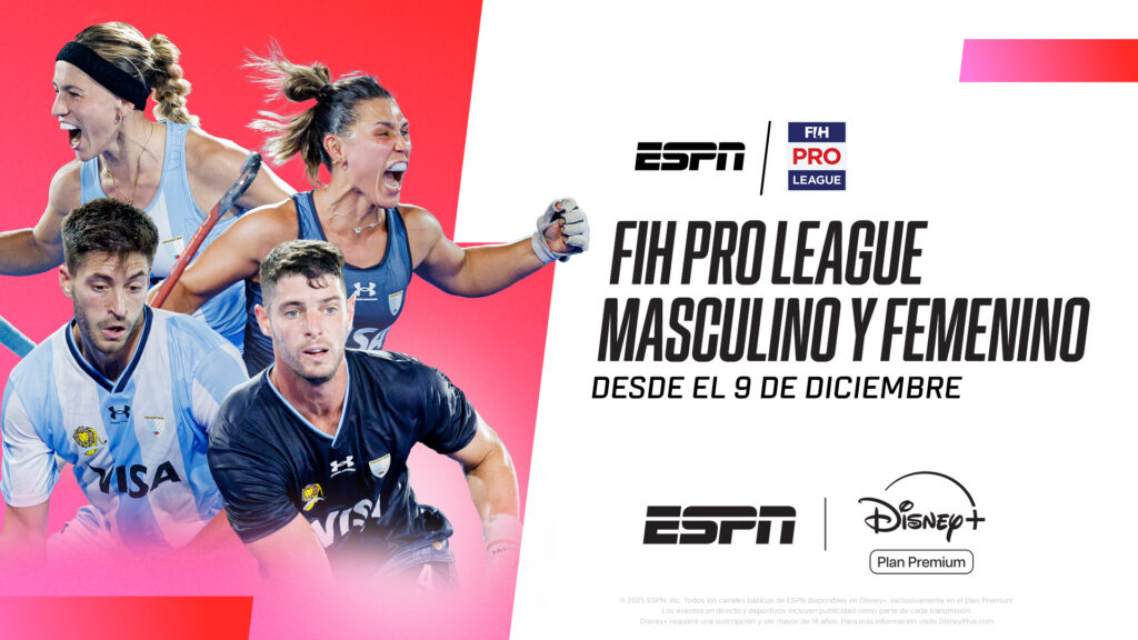 A partir del 9 de diciembre, la séptima temporada de la FIH Pro League de hockey sobre césped se pone en marcha por ESPN en Disney+ Plan Premium, desde Santiago del Estero, Argentina, primera sede junto a Dublín, en Irlanda, de este campeonato que reúne a los mejores seleccionados de este deporte en el mundo, con un recorrido que alcanzará durante la temporada los 144 partidos. Las Leonas y los Leones argentinos dirán presente en este triangular inicial de la edición 2025-26, a disputarse en el Estadio Provincial de Santiago del Estero hasta el 14 de diciembre.