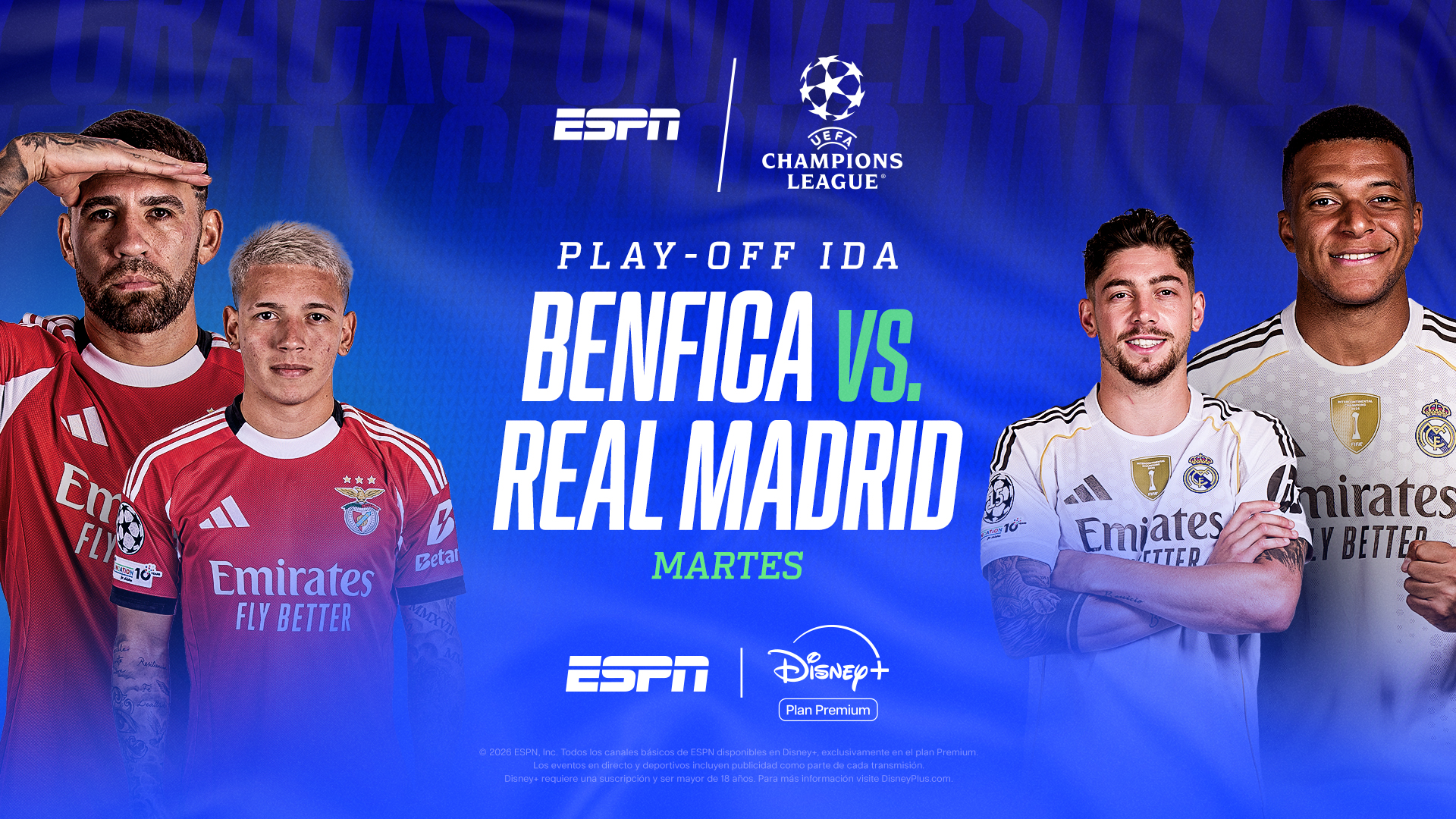 ESPN trae los playoffs de la UEFA Champions League, con el partidazo Benfica–Real Madrid