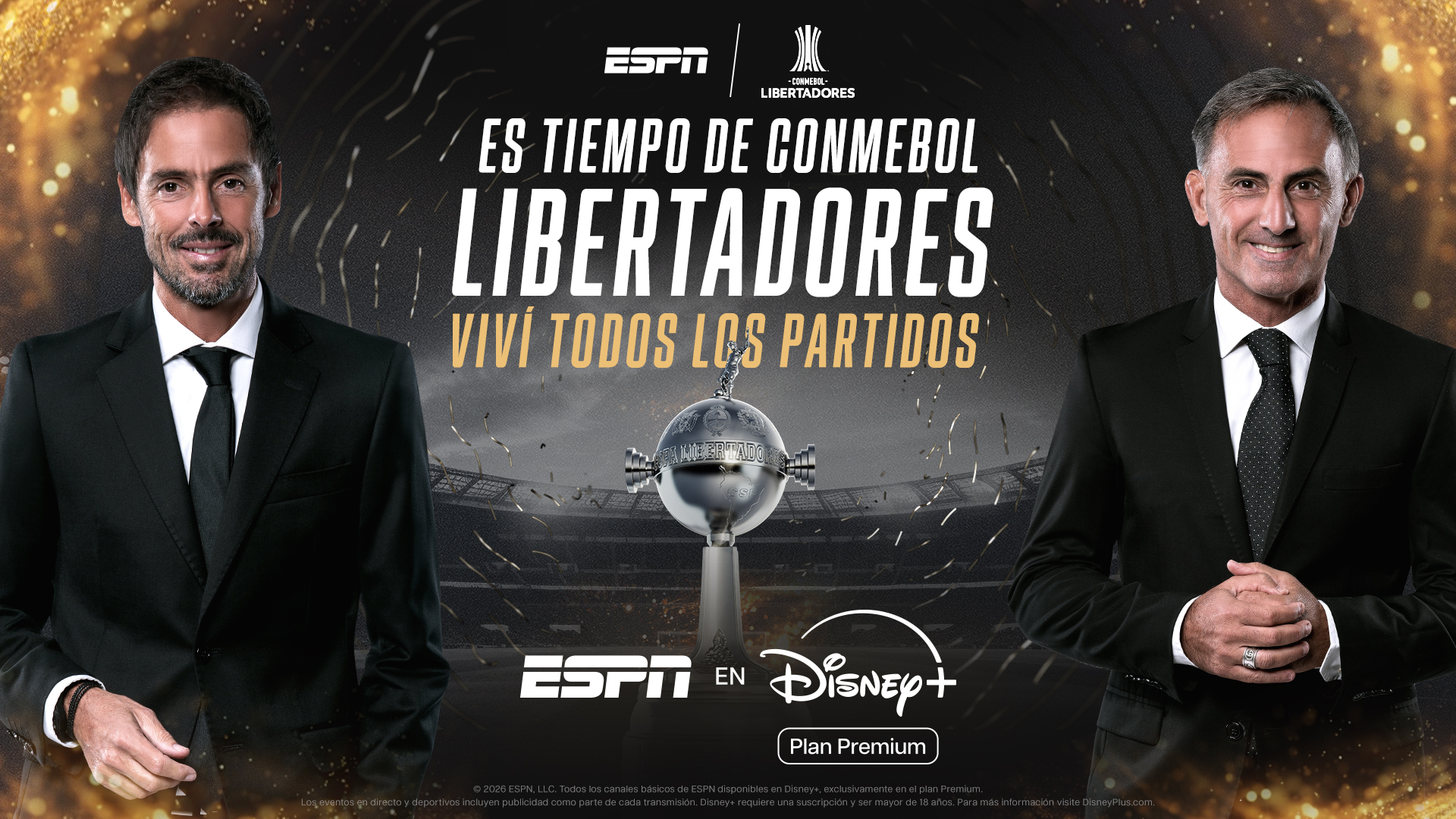 Toda la CONMEBOL Libertadores se vive en ESPN en Disney+ Plan Premium, mientras que la CONMEBOL Sudamericana se podrá disfrutar en ESPN y Disney+ Plan Premium
