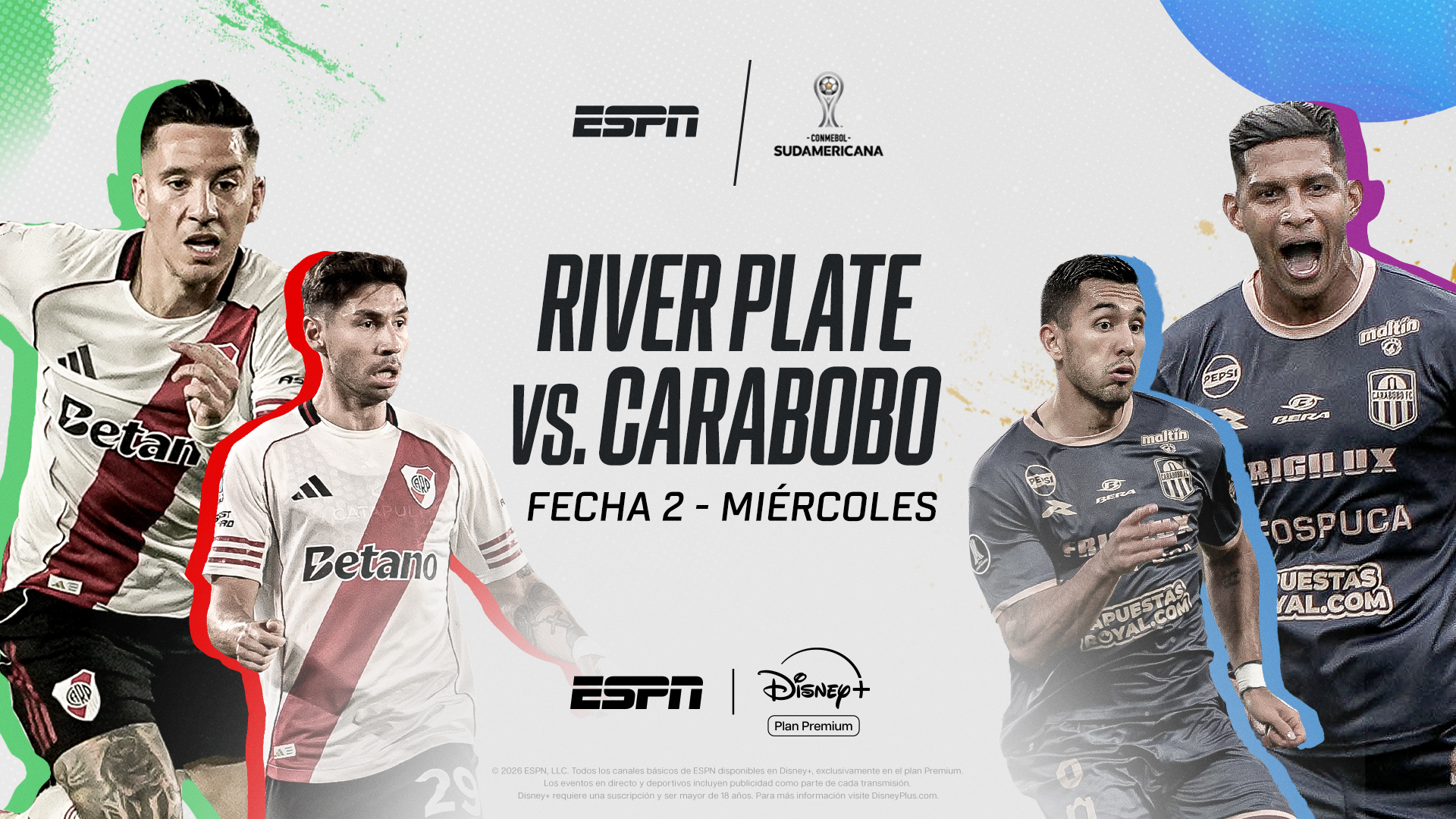 21:15 ESPN y Disney+ Plan Premium / River Plate vs. Carabobo